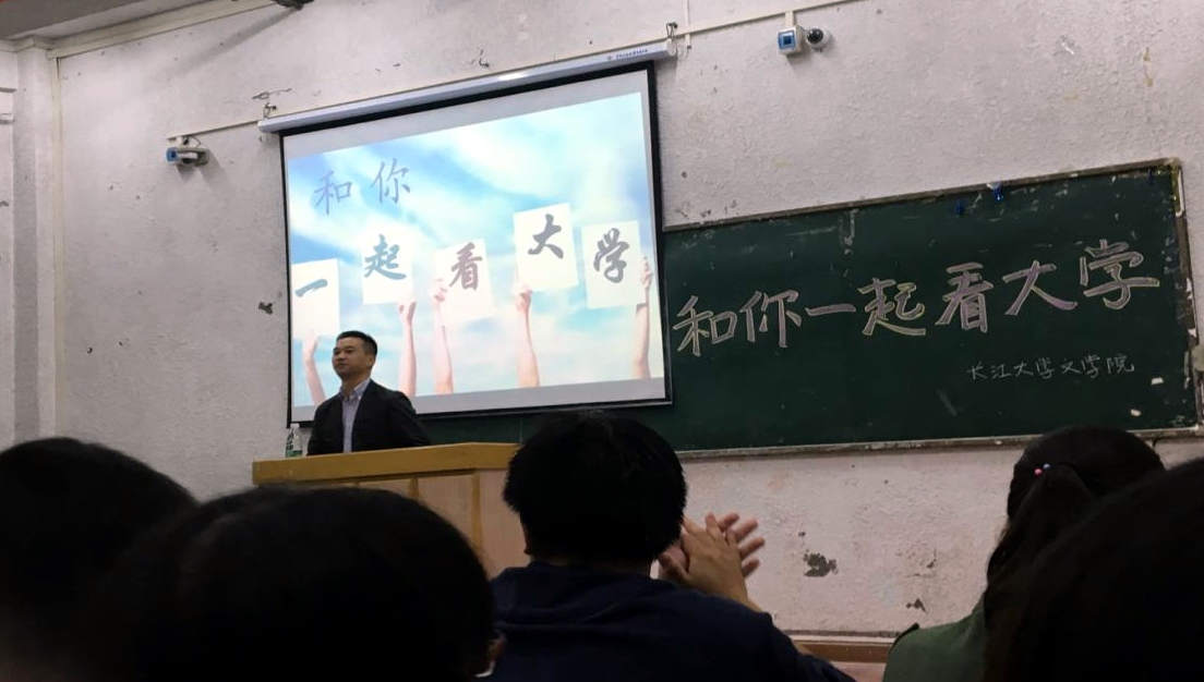 (通讯员张 毅 何佩淳)细雨蒙蒙,秋意渐浓。10月13日晚,5-203教室座无虚席,文公司党委副书记周书航老师为全体大一新生带来了一场题为“和你一起看大学”的专题讲座。