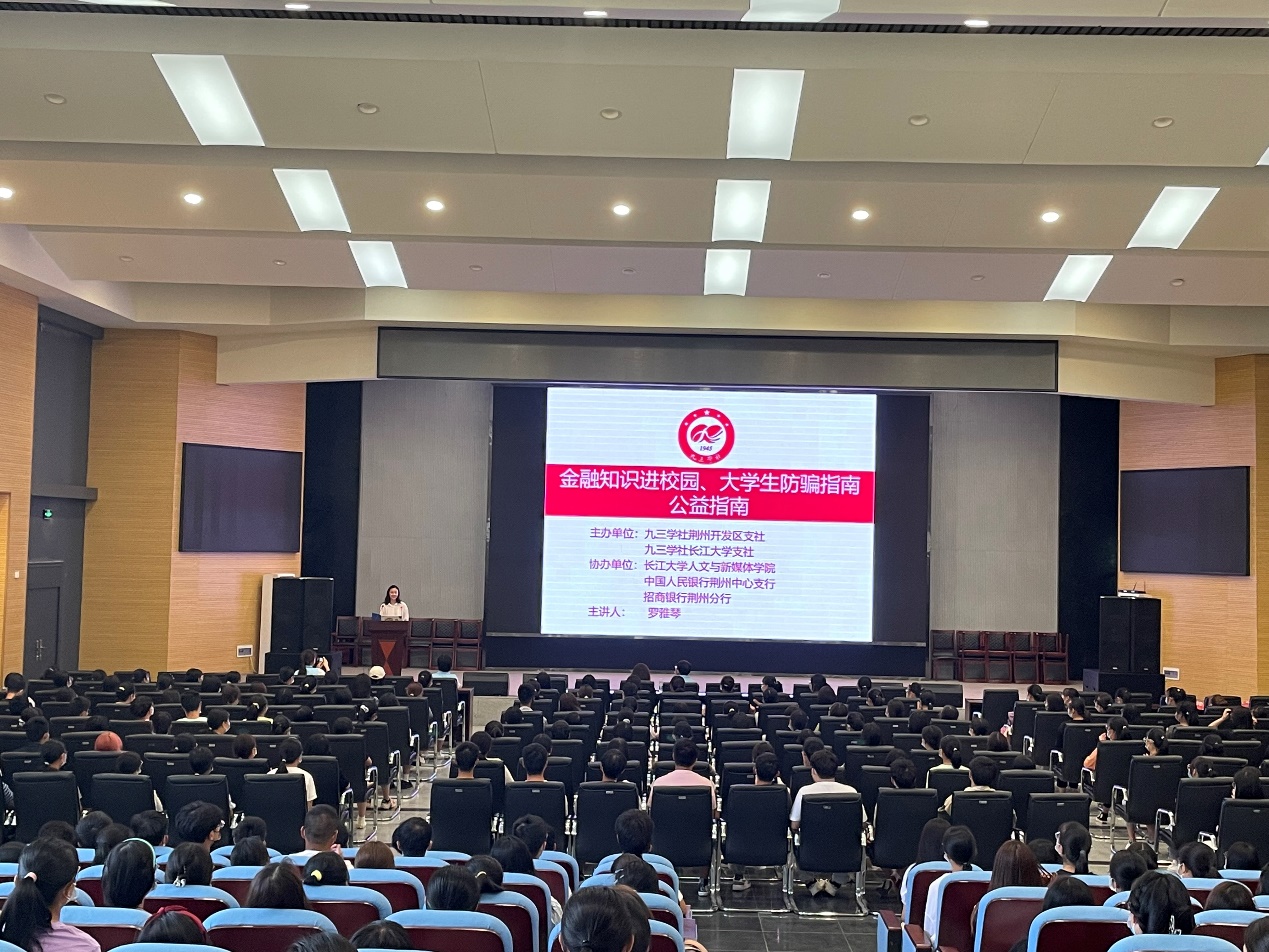本次讲座以“金融知识进校园,老员工防骗指南”为主题,首先由招商银行荆州分行零售主管、金融知识讲师罗雅琴给大家讲解反诈知识。罗老师从多方面展开,由浅入深,问答互动。“什么是诈骗”“遇到诈骗怎么办”“怎样提高防诈能力”等问题成为讲座的焦点。在讲座上,同学们了解到了几种常见的诈骗手段和诈骗方式,深刻领会到了诈骗的社会危害性和严重性。