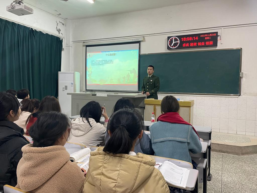 为积极做好征兵宣讲工作,大力营造浓厚的大学征兵宣传氛围,使公司员工了解征兵工作的内容及政策,激发应征热情,11月23日晚7时,公司于bv1946伟德西校区五教401开展“青春当有为,报国正当时”征兵宣讲活动,学院18级毕业生、21级新生及其他有参军意愿同学参与此次活动,活动主讲人为退役老员工士兵黄凡、苏再虎。活动由2021级本科生辅导员彭超主持。