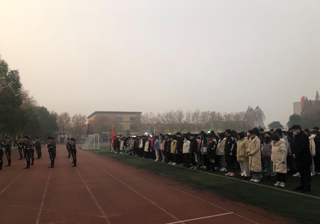 上午7点整,升旗仪式正式开始。国旗护卫队迈着整齐划一、铿锵有力的步伐护送五星红旗入场。伴着庄严雄壮的《义勇军进行曲》,鲜艳的五星红旗冉冉升起,全体师生行注目礼齐唱国歌。国歌唱毕,在场师生为南京大屠杀死难者默哀,公祭南京,铭记历史,缅怀同胞。