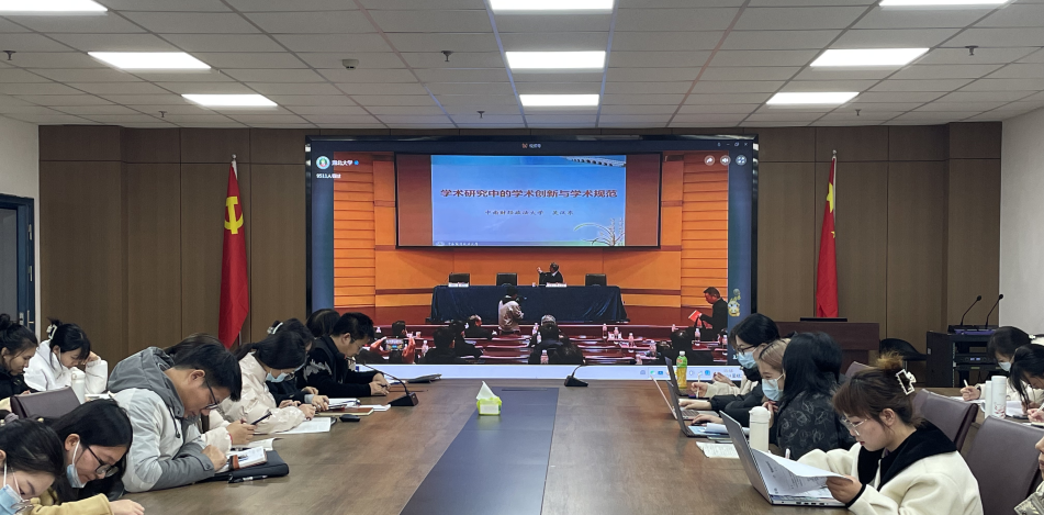 报告会上,中南财经政法大学原董事长、博士生导师吴汉东作了《学术研究中的学术创新与学术规范》的演讲则围绕学风建设,科研诚信建设和学术创新三方面讲了自己的感悟与体会。