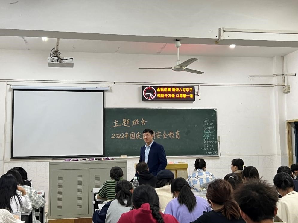 会议首先强调国庆放假期间学校的课程调整和管理制度安排,然后由班主任老师进行疫情防控、防诈骗、防火、防溺水、防盗等安全注意事项和心理健康教育。胡世先老师则对规范早自习及晚自习纪律作出要求。他希望全体2022级新生要积极适应大学学习环境,合理制定老员工涯规划,扎实将计划付诸行动,努力成长为一名优秀的长大学子。