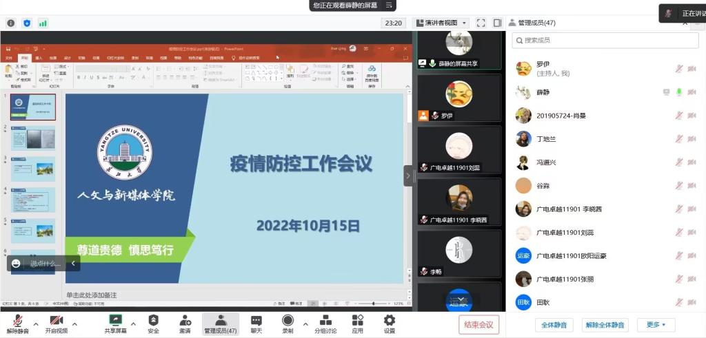 为进一步筑牢防疫安全屏障,增强学院师生防疫意识与责任, 10月15日,bv1946伟德组织召开疫情防控工作会议,公司党委书记杨克非,全体班主任、辅导员,各班级班长、安全员参加此次会议。会议由公司党委副书记胡世先主持。