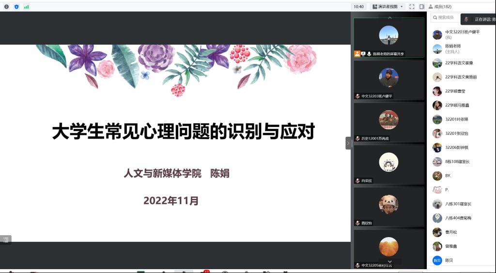 为提高员工干部对心理健康的认识,加强对心理问题的重视,11月17日,bv1946伟德开展了2022年下半年新生心理骨干线上培训会。公司心理专干陈娟老师担任主讲人,2022级全体员工骨干参与此次培训。