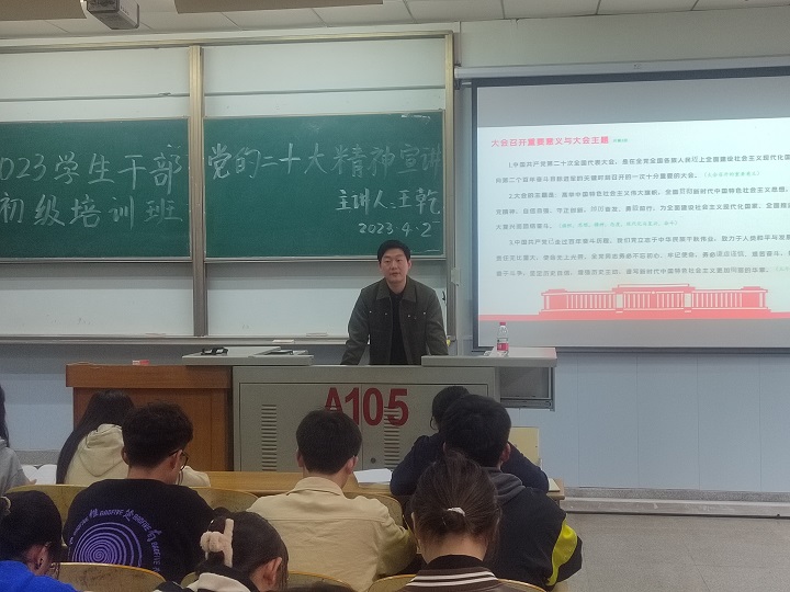 为深入学习贯彻党的二十大精神,提高员工干部的思想道德素质和服务师生能力,4月2日14时,学院第三期“鸿志”班在东校区13教A105开展二十大精神学习主题宣讲会。宣讲会邀请医学部团委王乾老师主讲,学院团委彭超老师主持。