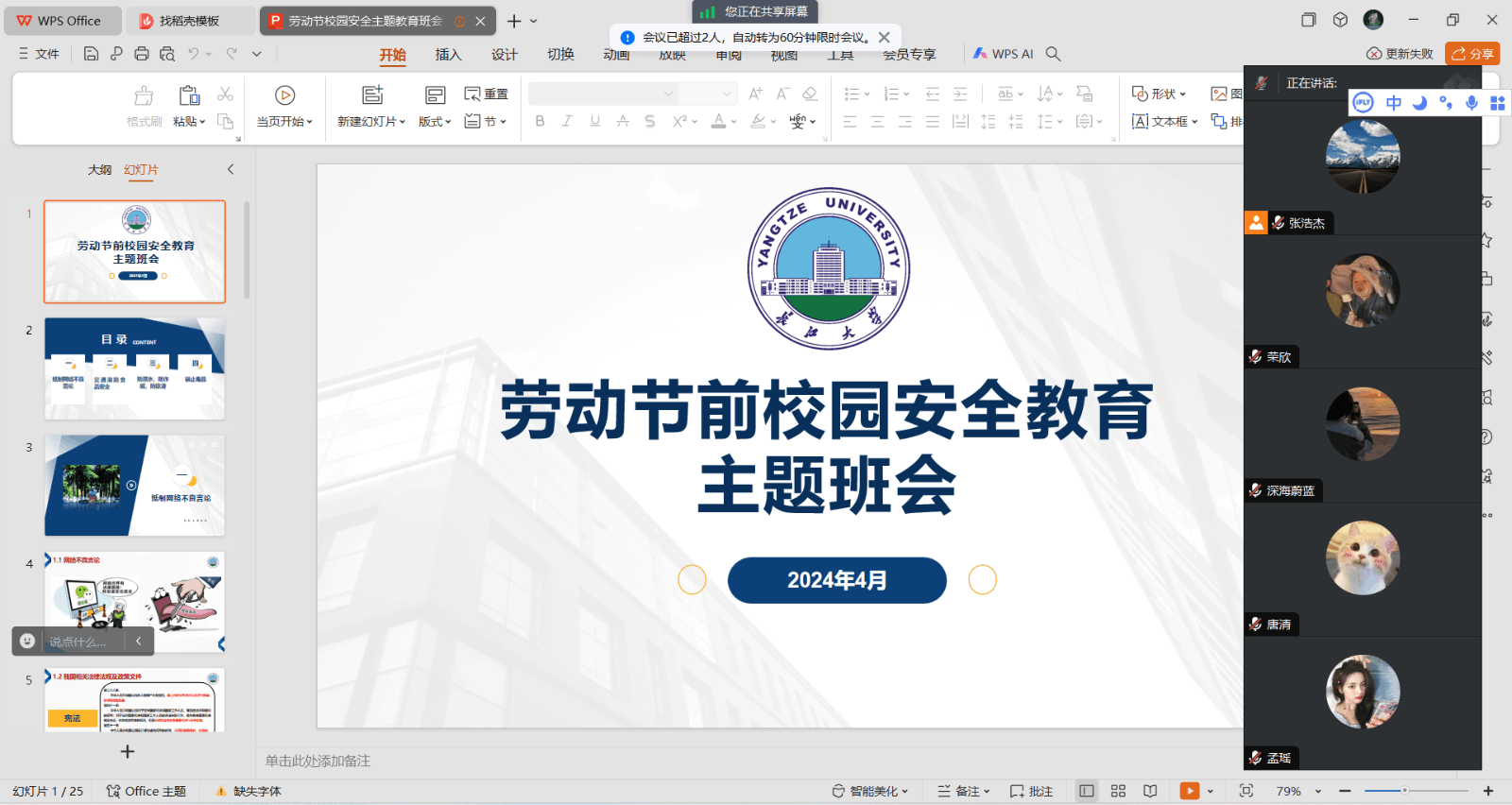 (通讯员 张兰)为加强学院安全教育,落实假期安全防范的各项工作,公司研究生各班级于4月23-26日开展了“五一”假期安全教育主题班会。