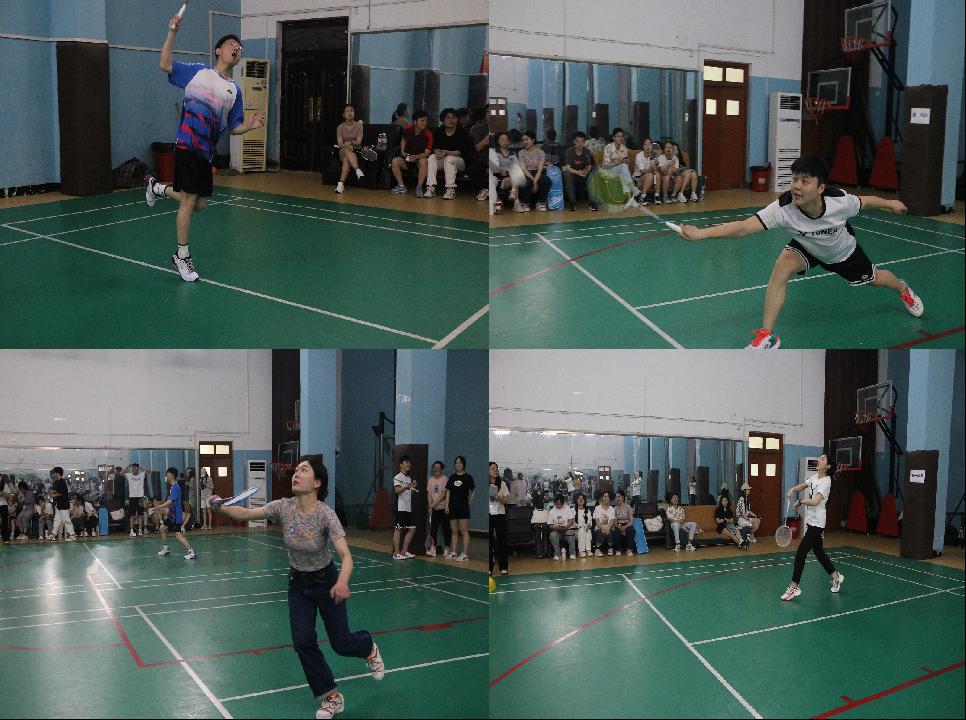 本次比赛设有男子单打、女子单打以及混合双打三个项目。在场师生纷纷表示将全力以赴,以积极的态度和良好的状态参赛。师生友谊赛在团结、友爱、热烈的氛围中拉开帷幕。比赛过程中,选手们精神饱满、顽强拼搏,纷纷亮出各自的看家本领,时而奋力扣杀,时而轻盈吊球,攻防转换、瞬息万变。比赛紧张而激烈,整个赛场洋溢着拼搏和快乐的气息。