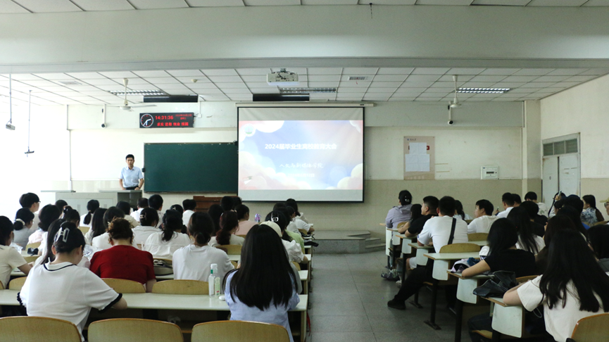 (通讯员 常启慧 严红麟)6月12日下午,学院在12教102室举行2024届毕业生离校教育大会,学院分党委副书记竺正海、员工事务办公室主任龚玉云、学院团委书记陈娟及2024届全体毕业生参会。会议由辅导员归航主持。