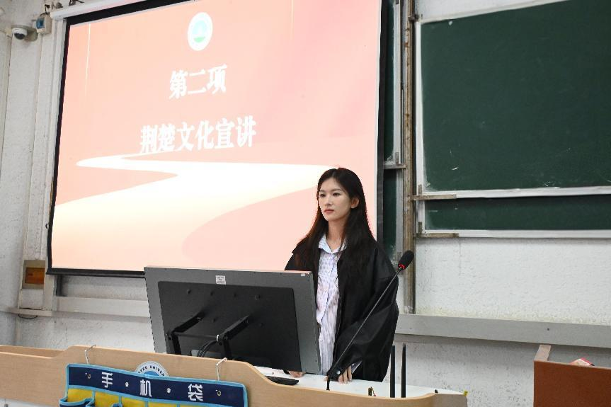 张兰进行荆楚文化宣讲。她以楚国服饰文化入手,通过介绍楚国服饰的渊源与发展,为在场学员带来了一场文化盛宴。
