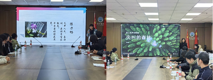 活动伊始,同学们纷纷踊跃地展示自己的优秀作品,将自己在文字世界中的独特感悟和精彩故事分享给在场的每一个人。在诗歌分享环节,王浩、张博栋、李佳慧等同学凭借着各自出色的朗诵和对诗歌深刻的理解各放异彩,赢得了阵阵掌声。其中,吴栋同学的现代诗《生活总似静静的流水》以其平实而真挚的语言,细腻地描绘了校园生活的百态,字里行间饱含着他作为新生步入大学这一人生新阶段时的种种真实情感,引发了同学们的强烈共鸣,现场掌声热烈。