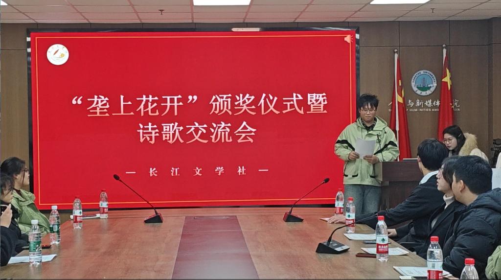 长江文学社一直以来坚守立足文字、鼓励创作的宗旨,秉持“真诚、高质量”的评选理念,在活动的最后环节,文学社社长余炎欣及三位友社社长为诗歌、文章赛道的获奖同学颁发了荣誉证书和奖品。