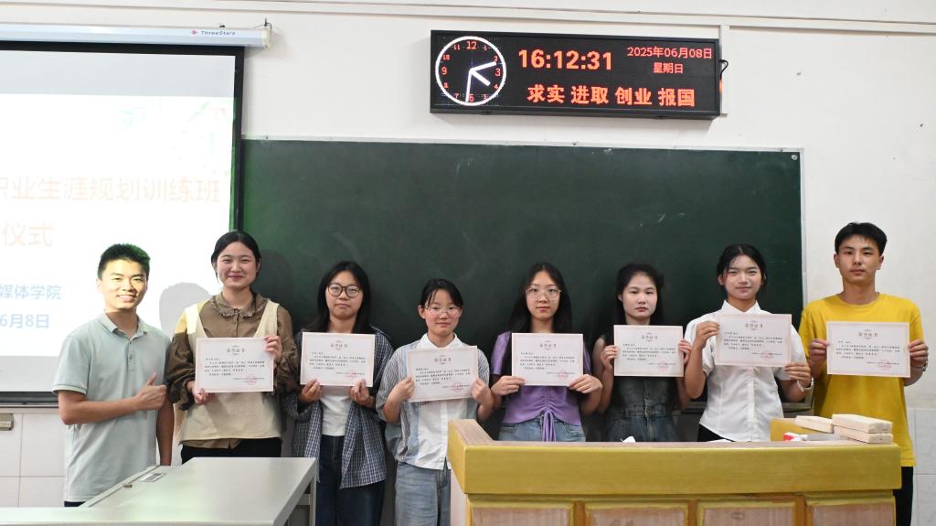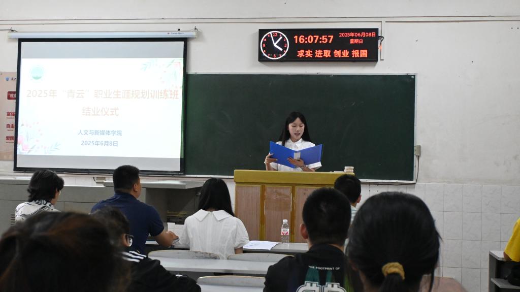 (通讯员 胡雅洁 杨敬萱)6月8日下午,bv1946伟德第二届“青云”职业规划训练班结业仪式在西校区顺利举行,学院辅导员彭超、耿传令,院员工会成员及第二届“青云”班全体学员积极参与。