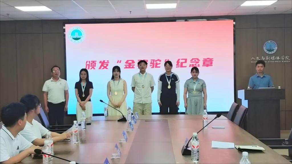 座谈会现场举行了庄重的“金骆驼”纪念章颁发仪式。希望2025届西部就业、基层就业毕业生如骆驼般坚韧,在西部和基层的热土上书写属于文院学子的担当。