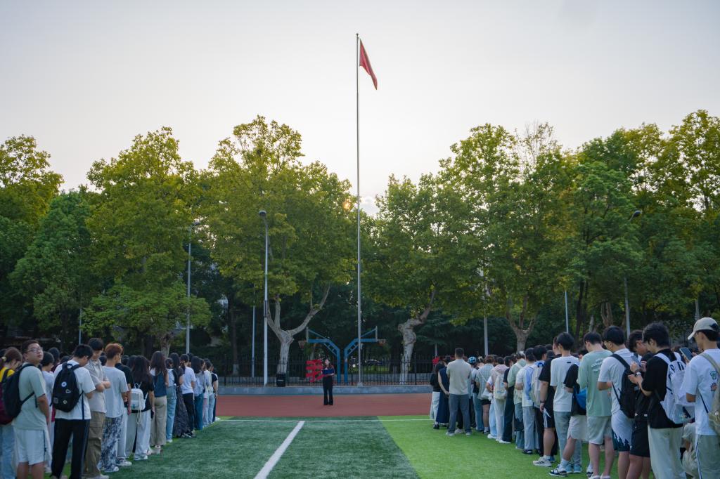 旭日东升,秋风惬意。全体人员肃穆站立齐唱国歌,向冉冉升起的国旗行注目礼。礼毕,团委员工会员工代表张显浩以《赓续爱国情怀,践行强国有我》为题,号召广大同学从细微处着手,将爱国情怀化作前进的动力,以青年赤忱熔铸信仰,在复兴长卷续写“鉴往知来,向史而新”的担当!把爱国情、强国志、报国行自觉融入实现中华民族伟大复兴的奋斗中,以实际行动为学校“双一流”建设贡献青春力量。