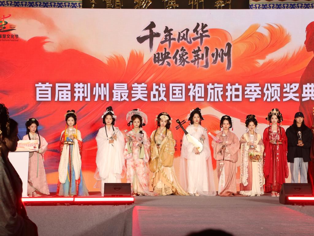 公司李征宇副经理受邀担任本次战国袍旅拍季颁奖典礼的开奖嘉宾。在揭晓“荆州最美战国袍”大奖之前,他表达了对此次活动的文化意义的肯定:“这不仅是对传统文化的保护性传承,更是一次创新性转化,以‘衣冠’为媒,为荆州文旅融合发展注入了独特的文化符号与情感记忆,这份意义远超一场评选,是荆州文化自信的生动表达。”同时也鼓励现场参与人员和员工沉浸式参与,去触摸、去欣赏楚人的浪漫想象和时代的审美风骨。