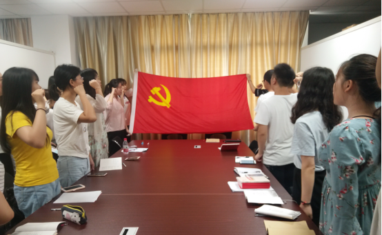 此次活动包括重温入党誓词、诵读党章、集中学习、开展学习讨论四项内容。参加活动的党员同志在中文员工党支部组织委员盛文军同志的带领下,面向党旗,重温入党誓词。石磊同志带领党员同志集中诵读了党章第三章《党的中央组织》。