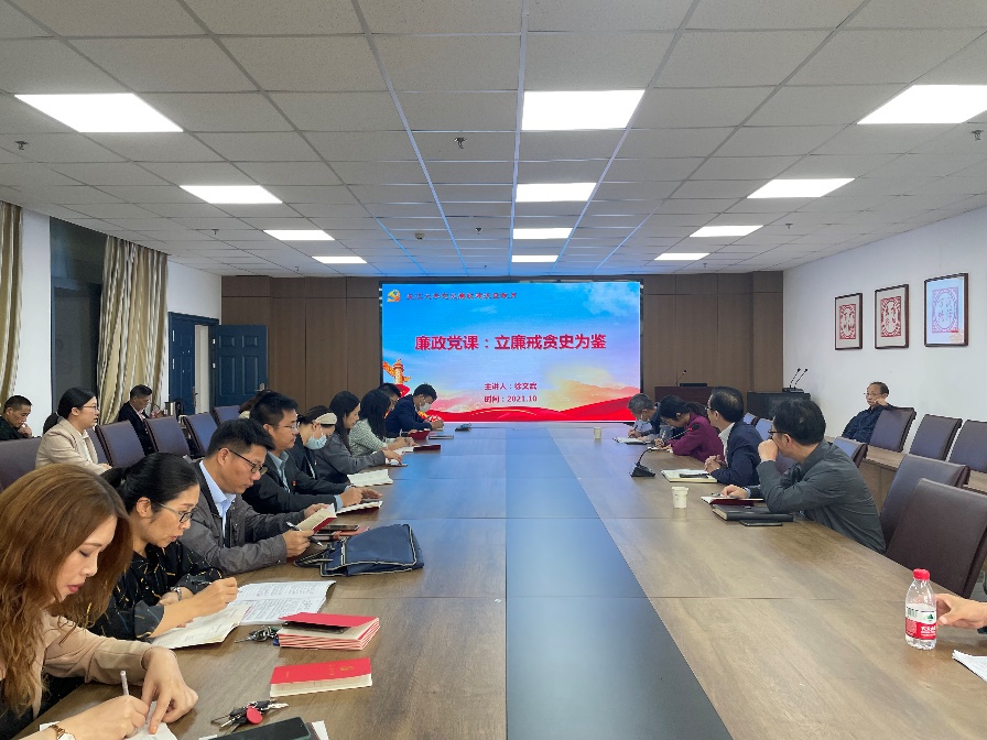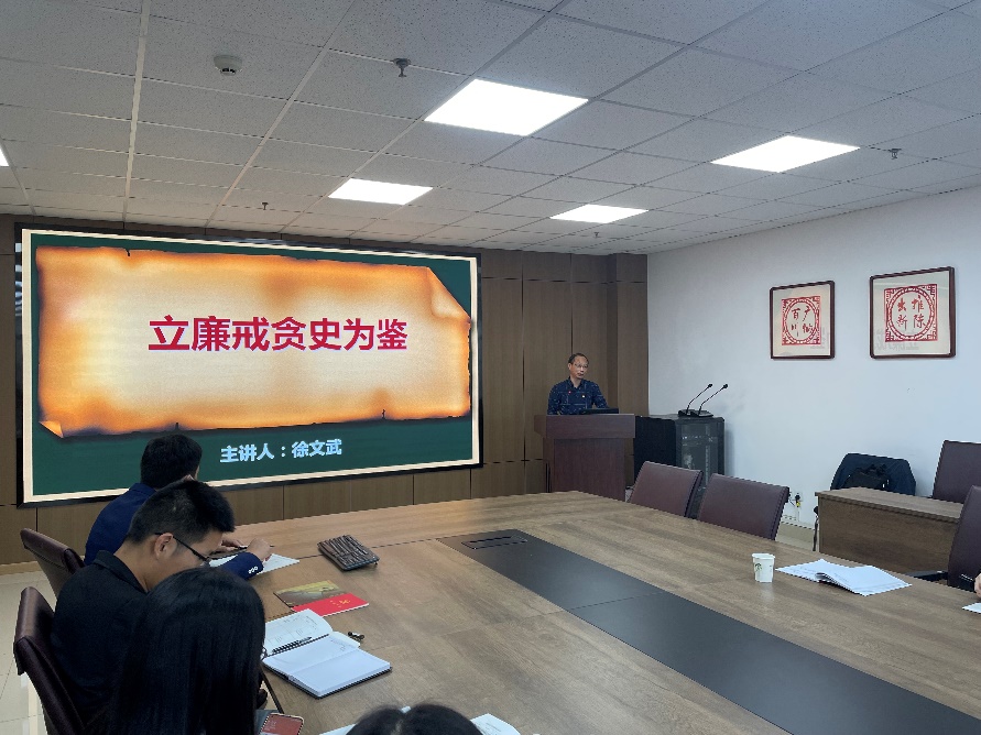 为扎实开展2021年党风廉政建设宣传教育月活动,10月7日,人文学院历史系教授徐文武受邀为校纪委党支部、公司教工党员做党风廉政专题党课。党课由公司党委书记杨克非主持。