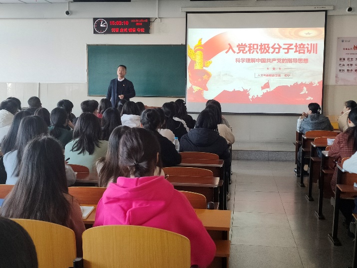 为进一步提高公司入党积极分子对中国共产党指导思想的理解程度,按照本期入党积极分子培训班课程安排,11月14日下午,培训班第三讲在东校区12教505教室举行,人文学院辅导员何宁受邀开讲。