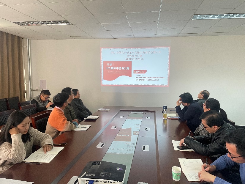 2021年11月25日,新闻历史行政联合教工党支部在8号楼309会议室召开支部主题党日活动,学习党的十九届六中全会精神,支部全体党员参加,支部书记樊露露主持会议,并就全会精神作党课宣讲。