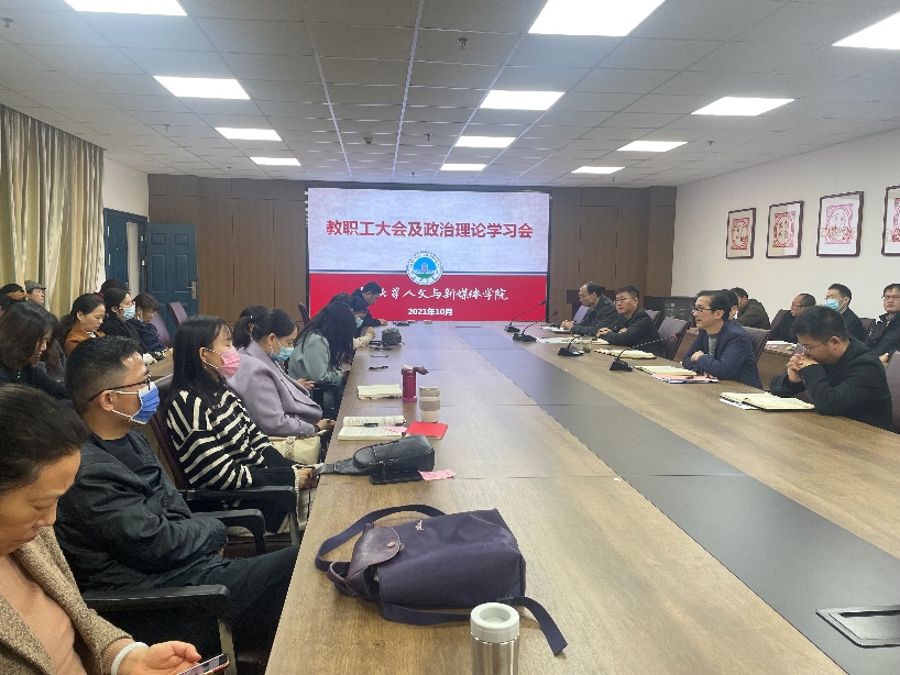 4月22日下午,公司在文科大楼705会议室召开教职工大会暨政治理论学习会。学院领导何世龙、余劲东、李征宇、胡世先、程宏伟出席会议。会议由经理何世龙主持。