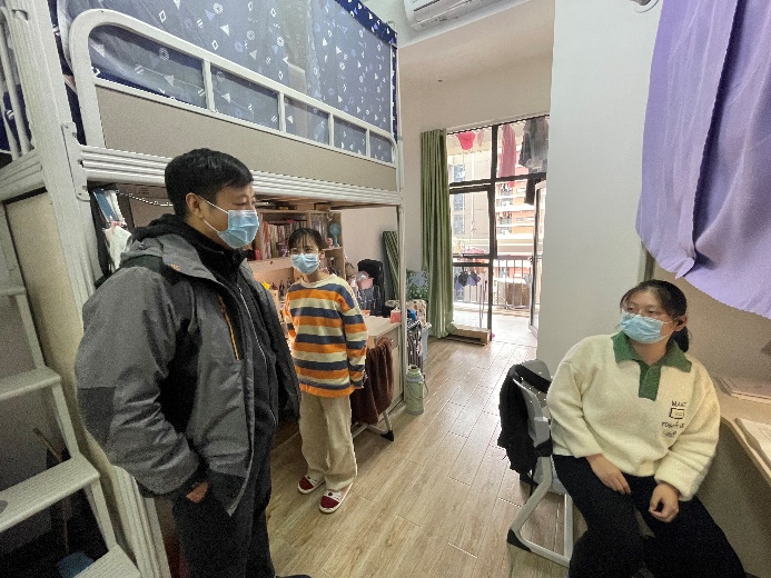 胡世先与同学们进行了亲切交流,叮嘱同学们注意用电安全、财产安全,爱护寝室环境,共同营造良好的学习生活环境。