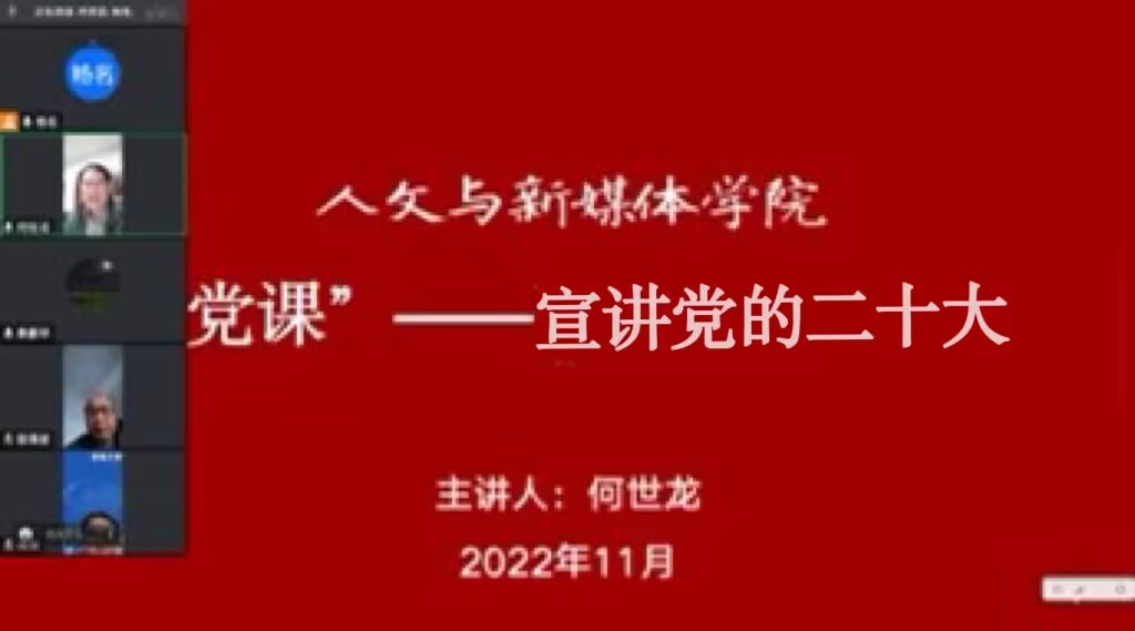 为积极响应党员干部“下基层察民情解民忧暖民心”实践活动,引导教师党员进一步学习贯彻党的二十大精神,11月28日,学院经理何世龙以“党的二十大精神”为主题,为中文专业教工党支部作主题党课。