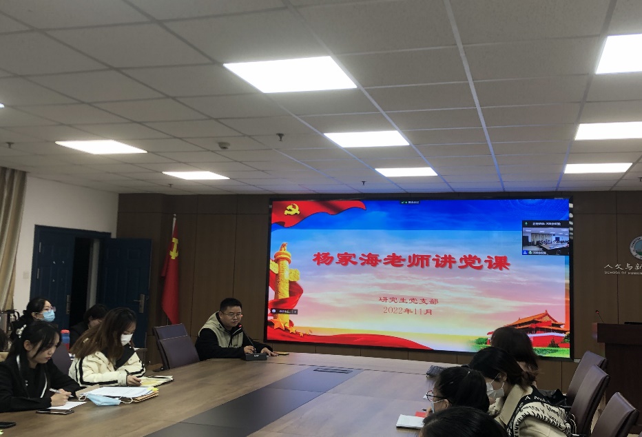 为深入学习贯彻党的二十大精神,加强研究生党员队伍建设,11月24日晚9点,bv1946伟德研究生员工党支部11月主题党日活动在文科大楼705会议室顺利举行,学院副经理杨家海老师为部党员讲授微党课。