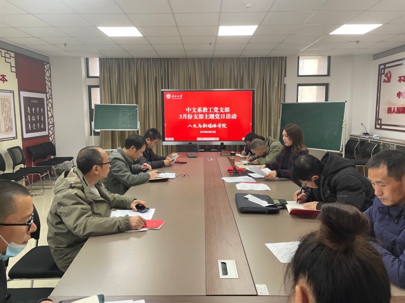 3月23日,中文教工党支部在文科大楼701会议室开展3月份支部支部主题党日活动,支部全体党员参加学习活动。支部书记杨名主持会议。