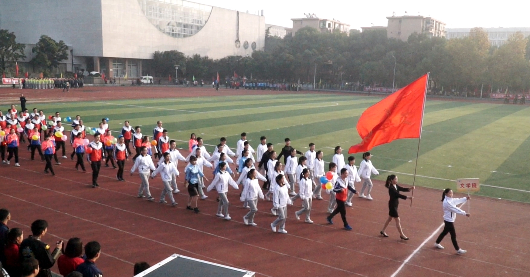 在入场式上,身着统一服装、喊着响亮口号、迈着矫健步伐的40余名老师和员工运动员方阵一起走过主席台,充分展示了文学院团结和谐、健康向上的良好精神风貌。在之后的第九套广播体操表演中,雒仁启、向会斌、严实、罗威、陈先蕾等10名老师与30名员工组成的文学院代表队跟着广播口令,齐刷刷地转身、下蹲、跳跃,步伐整齐,动作有力。