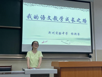 为培养师范人才,凝练和传承教育精神,6月23日下午,中文系师范技能训练的重要活动——“名师示范课”在1教300教室顺利举行。特邀授课名师为荆州市实验中学高级教师杨溯琴老师。本次活动由经理助理杨家海老师主持。师范班主任杨名老师及2018级全体中文师范专业员工、学科语文专业硕士生参加了活动。
