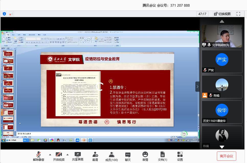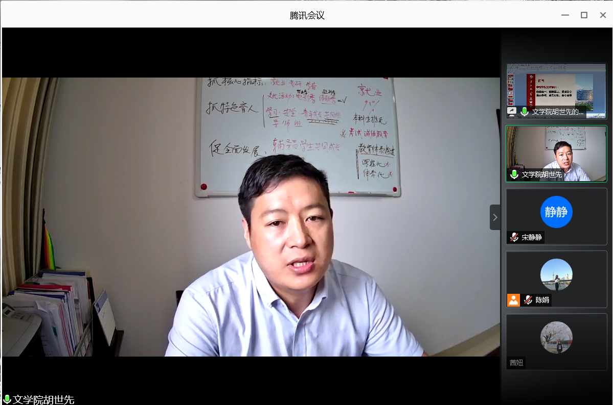 “希望大家平平安安返校来,平平安安归家去,祝福大家心随所愿,前程似锦。”陈娟老师在会议结尾时,表达了自己对2020届毕业生的殷切期盼和诚挚祝福。
