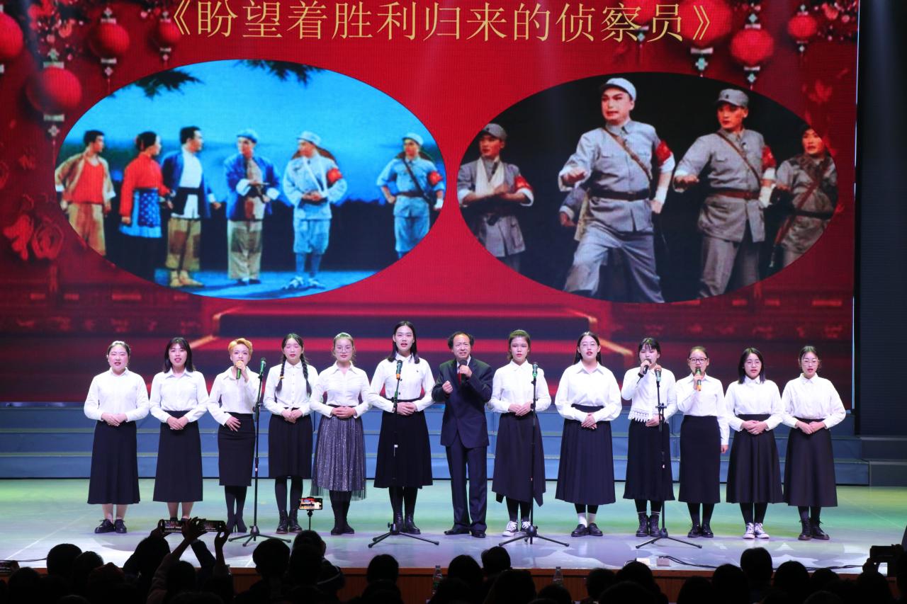 戏曲作为中华文明的璀璨瑰宝,在荆楚大地上绚烂夺目,一曲《挑担鼓围唱荆河》拉开了晚会的帷幕,老艺人们生动地为我们呈现了很久以前人们是如何观看荆河戏曲的场景,热闹非凡。马山民歌《火烧粑》尽展文化魅力,品味江汉平原浓郁的风土人情,了解那段独特的历史。《穆桂英招亲》中尽展巾帼英雄的柔情万丈。京剧《沙家浜》选段中,除了有吴松老师的倾情演唱外,还有中外员工的参与,为节目增添了新鲜力量。荆河戏《莲台收妃》唱腔婉转动人,令人心驰神往。汉滩小曲《唱荆州》以地方方言演唱,用四胡与丝弦乐器配合,将民间传说与历史传奇结合,主持人还邀请汉滩小曲传承人丁忠红老师进行了现场教学。接下来的京剧《大武生》表演者的动作让人看得眼花缭乱,高超的技艺足以感受到演员们台上一分钟台下十年功的努力。荆河戏新编《百花亭》由长大学子以全新的方式演绎——用中英双语为我们带来不一样的视觉感受。一个木鼓,两只鼓柄,虽无华丽的舞台,但那华美的唱词、平整的韵脚和瑰丽的故事,令人无限神往,老艺人们携手为我们带来《鼓盆歌串烧》。荆河戏《天官赐福》反映了人们对美好生活的期盼。最后一个节目职工歌舞秀,为晚会画上了一个圆满的句号,职工们活力四射的表演把晚会的气氛推向了高潮。一群群来自不同国家,肤色各异的外国青年,他们热爱中国传统文化,并用自己的方式表达着对中国优秀传统文化的喜爱之情,更传达了中外友好交流的美好愿景!