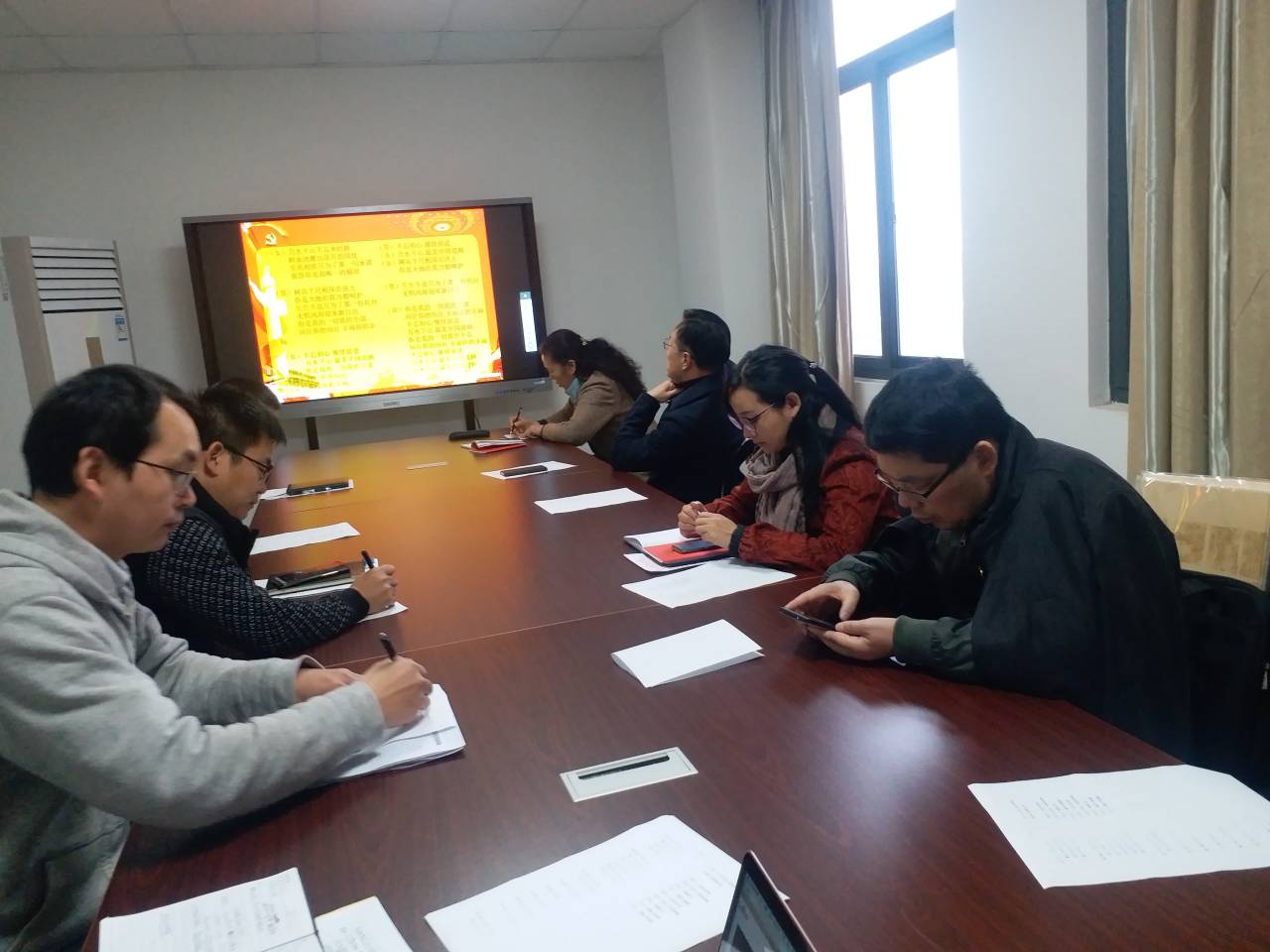接着,教工支部分别在731会议室和705会议室开展了十一月支部主题党日活动,全体党员重温入党誓词,诵读了党章第八章,集中学习了习近平在中共中央政治局第十七次集体学习会上的讲话精神以及《中国共产党第十九届中央委员会第四次全体会议公报》,重点学习了朱业宏书记《将“改”字贯穿主题教育全过程》以及组织部下发的通知《关于近期抓好主题教育的具体要求》。会上,党员们纷纷表示,会认真学习领会十九届四中全会精神,在本职岗位上埋头苦干,坚守教育报国初心,勇担立德树人使命,助力学院事业发展。
