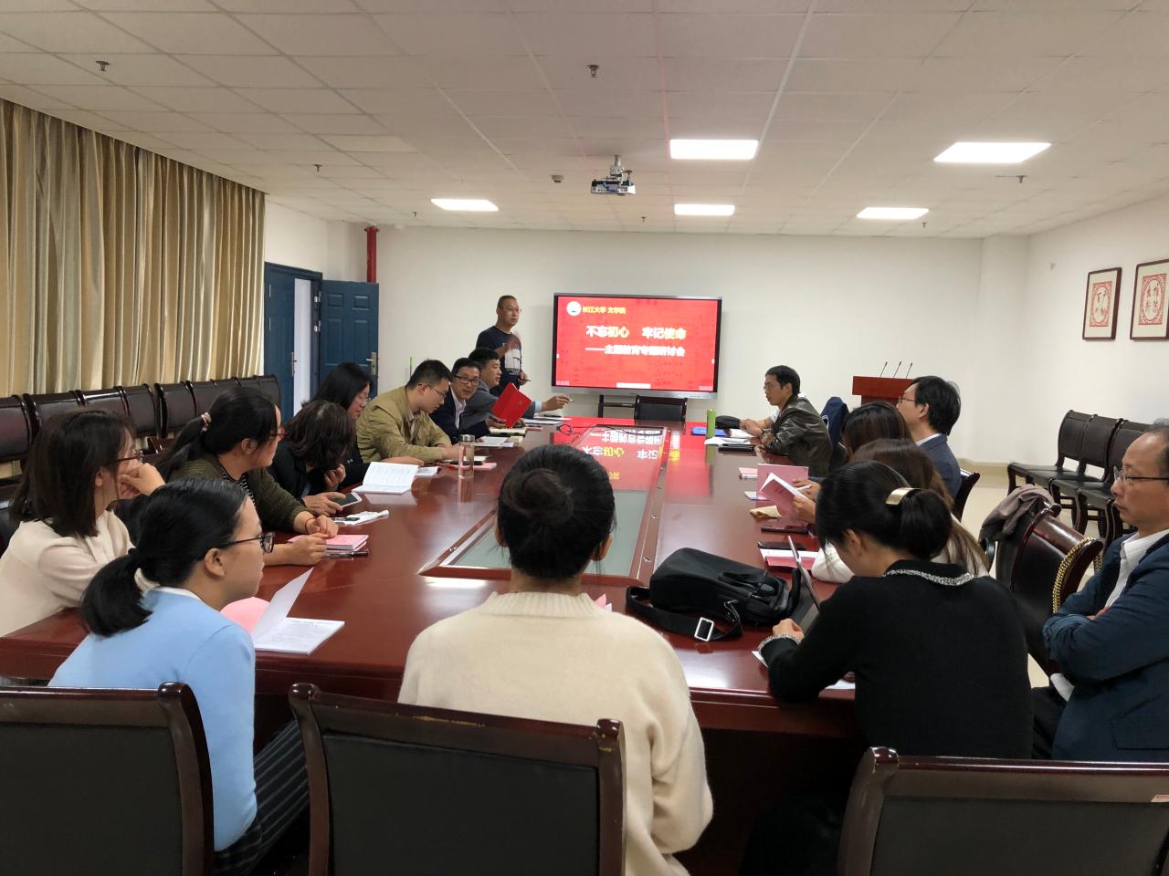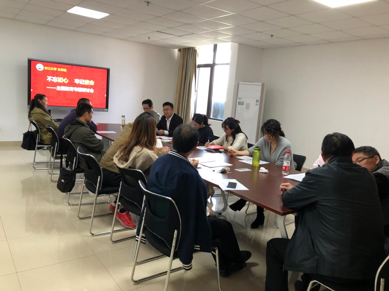 为深入贯彻“不忘初心、牢记使命”主题教育工作部署,进一步筑牢开展好主题教育的思想基础。10月31日下午2点,文学院在文科楼705会议室召开10月份教职工第二次支部主题党日活动。由文公司党委书记杨克非主持会议。
