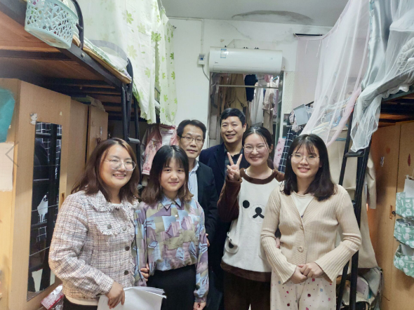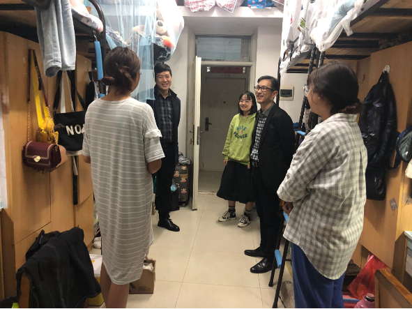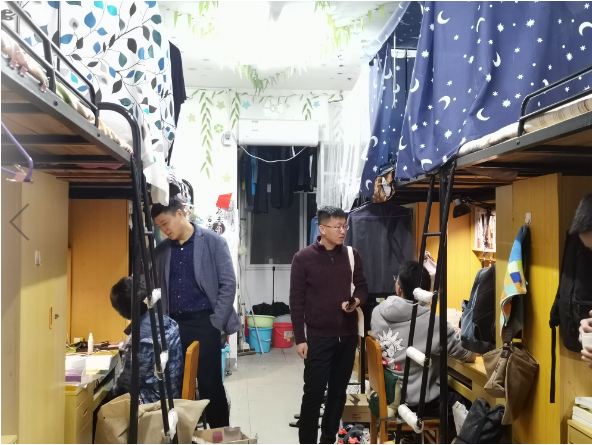 10月22日、23日晚,学院领导分别走访了东、西校各员工宿舍。在走访寝室的过程中,学院领导在了解同学们的状况之后,针对同学们目前存在的问题进行了沟通,他们表示会共同帮助同学们解决所面临的问题,同时希望在搞好学习的同时,努力营造温暖、和谐、积极向上的寝室氛围。