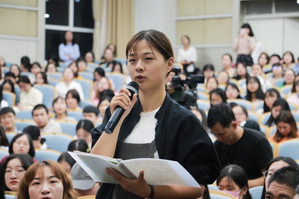 报告会上,王教授还与现场观众进行了积极的互动。来自文学院的汤芳老师提出了自己的疑问:“在文本解读中,如何协调作家自身、读者本身以及文本本身这三者的关系”。王教授首先肯定了问题的专业性,并提醒现场同学们解读作品时不应拘泥于某一特定形式,应在文本解读的同时进行自我反省、自我调整,从而丰富自己、发展自己。
