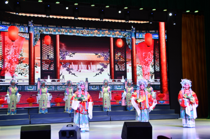 “梨园上腔,不同凡响”,由吴薇作词、白林作曲的员工合唱《荆河戏颂》拉开了晚会序幕。一曲荆河戏新编大联演《挑担围鼓唱荆河》,锣、鼓、唢呐声声相应,现场热闹非凡;由公司员工带来的传统荆河戏马锣腔《荆州来了刘关张》,身段灵活、手眼相宜,展现了公司学子传承地方戏曲的热情;公安县孟家溪小学的小朋友们带来的公安说鼓子《清风源自桂花台》,童声童趣,独具地方特色;员工罗琼扮演的女版《赵云下山》,行云流水、飘逸铿锵;区文化馆带来的马山民歌《火烧耙》,嗓音嘹亮,婉转悠扬,一展荆楚民谣特色;现代荆河戏《红嫂》让观众重温了革命年代军民鱼水情;公司教师陈芬、吴薇、简志虹表演的新编荆河戏《百花亭》选场,凤冠霞帔、美轮美奂,以中英双语演唱的独特方式,一展公司教师的风采;国家一级演员、汉剧大师程彩萍现场示范演出《百花亭》,让现场观众一览大师风范;《斩三妖》作为压轴戏,技惊四座,展示了传统荆河戏的独特魅力。晚会中,现场1000余名学子与主持人频频热烈互动,共同表达对老艺人们坚守荆河戏的敬仰之情。整场晚会高潮迭起,在场专家们大为称赞,全场掌声不断。