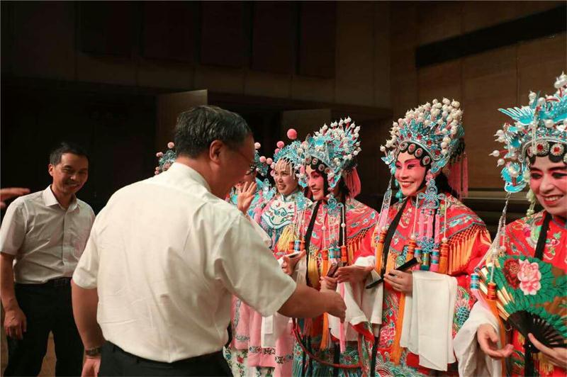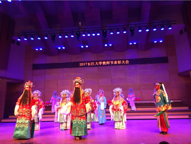 (通讯员 李思源 桑俊)9月8日晚7时,2017年度bv1946伟德教师节表彰大会在艺术学院音乐厅隆重举行。文学院、体育学院、艺术学院、校工会等都为表彰大会精心准备了各类节目。感人肺腑的诗朗诵,满怀深情的独奏,激动人心的群舞等,文学院荆河戏传承基地也特别排演了荆河戏《百花亭》,献礼表彰大会。华美精致的戏服,光彩夺目的妆容,传统韵味的配乐,再加上师生们的倾情演绎,那一刻,台上台下的视线都凝聚在一起,掌声雷动,首演获得了一致的好评。