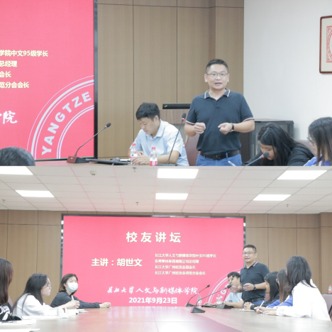 胡世文围绕自己的成长、创业经历进行分享,并与同学们深入交流,表达了自己的感想——第一,我们需要具备大城市的格局甚至放眼全球的视野,不要局限自己的胸怀,各行各业都能成就自我;第二,提前做好适合自己的职业规划,在坚定目标的过程中不断培养自信、积累经验、沉淀自我。
