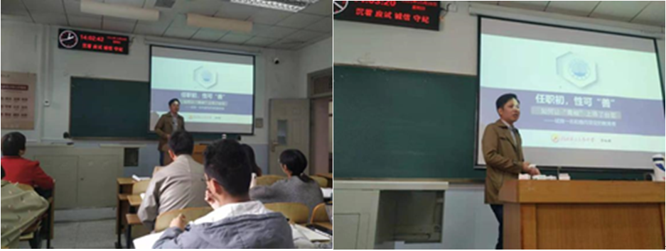10月28日下午,精彩讲座再次上演。李咏骋讲座主题是“任职初,性可‘善’”,内容主要分为为五个部分:“历史教师的使命(善育)”“课堂教学的胜任(善学)”“专业成长的发展(善教、善写)”“人际关系的和谐”。在“课堂教学的胜任(善学)”这一部分,李老师分享了新教师如何更好地开展教学活动的经验,点出了新教师所面临的挑战以及新教师如何突破挑战的方法等。