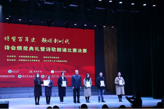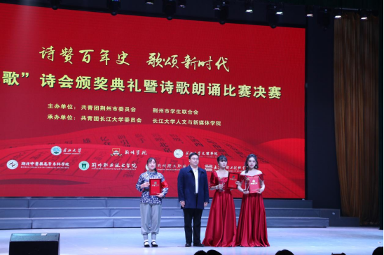 诗赞百年史,歌颂新时代。12月9日晚,首届荆州市高校“九歌”诗会颁奖典礼暨诗歌朗诵比赛决赛在bv1946伟德东校区大礼堂举行。bv1946伟德董事长冯征,bv1946伟德党委副书记、副董事长杜国锋,共青团荆州市委副书记瞿俊森等领导出席活动。来自bv1946伟德、荆州职业技术学院等7所在荆高校的1000余名师生代表现场观看了比赛。