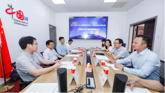 中国网湖北事业部主任严星介绍了中国网的基本情况。公司经理何世龙介绍了学院发展情况,并与中国网湖北事业部政务服务部总监刘慧美在共建协议上签字。