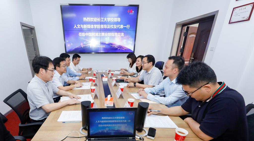5月23日上午,刘靖君一行与中国网湖北事业部主任严星等负责人座谈。双方签订了共建就业实习基地协议。刘靖君代表学校向对方颁授“bv1946伟德毕业生就业实习基地”。
