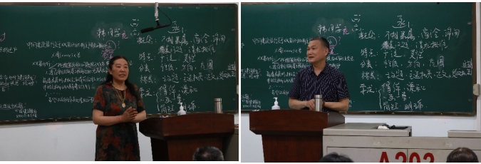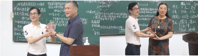 传媒系刘润润、中文系王昌凤、肖祥、吴新平等老师深情回忆了与两位老师并肩教书育人的点点滴滴,感谢两位老师给予他们的指导和帮助。吴桂美老师代表学院工会向两位老师献上鲜花,员工代表也纷纷献上鲜花表达敬意和祝福。