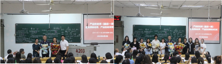 6月2日下午,学院在东校区13教A203教室举办严运桂老师最后一课暨龙厚雄、严运桂老师荣休仪式。学院领导和师生代表参加仪式。仪式由党委副书记胡世先主持。