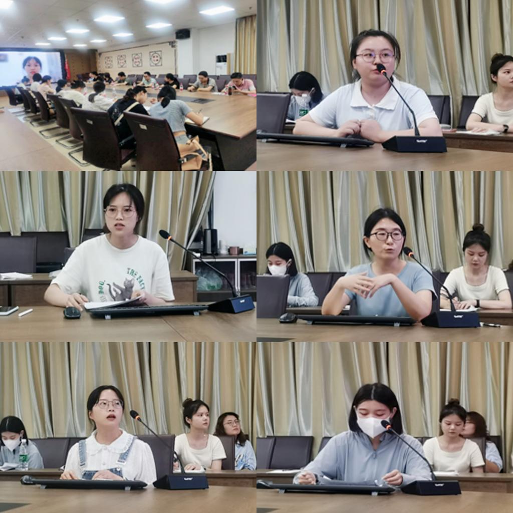 会上,校外实习小组代表何力同学从四个教育“热点”出发,以教学过程、《义务教育课程方案和课程标准(2022年版)》以及正面教育理论等与公司产品改革相关内容的论述拉开了会议的序幕。她利用具体的教学事例解释并分享了当前热门的理论研究,逻辑鲜明,理论性和实用性强。其余各实习学校小组代表蔡钰(荆州市东方红中学实习小组)、罗晓婧(荆州市江陵中学实习小组)、李文玉(湖北省沙市中学实习小组)、付淑芬(湖北省沙市中学实习小组)、黄静雨(湖北省荆州中学实习小组)等5名同学结合实习环境,以生动形象的图文结合形式从实习学校特点、实习心得和学科教学改革现状三方面讲述了实习感悟,有的还对学院实习工作提出了一些建议。