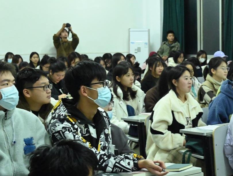 讲座使同学们受益匪浅,来自新闻32202班的许韵诗说:“陈儒老师和吴菲学姐的亲身经历和学习方法使原本比较迷惑的我有了比较明确的前进方向,对于学好传媒专业充满了信心。”(摄影 柯辉 付颖格)