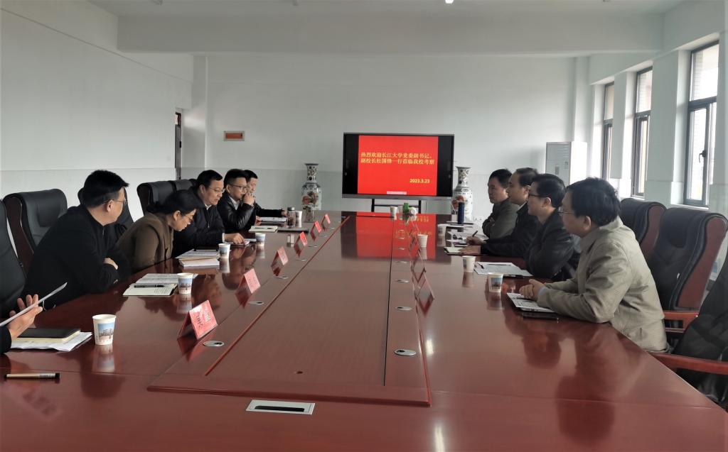 杜国锋一行参观了鄂州高中教育集团二中校区新校园,并与鄂州市副市长邱实、市教育局局长范玉姣、鄂州高中教育集团总董事长闫东、鄂州二中党总支书记吴超等领导座谈交流,送上喜报和邀请函。