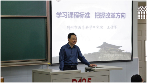 (通讯员:杜羚毓 李悦)学为人师,行为世范。4月13日下午,bv1946伟德在13教D125教室举行了主题为“学习课程标准 把握改革方向”的初中语文示范课讲座。此次活动是荆州市教师教育综合改革试验区项目的内容之一,也是公司开设的“中学名师讲座”的内容之一,主讲人是荆州名师驻bv1946伟德工作站首批入驻名师、荆州市教科院经理王佑军老师。中文系主任秦鹏举老师、章芳老师、刘金勤老师、学院部分研究生以及2020级部分师范生参与此次讲座。