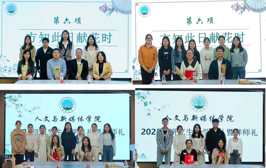随后,迎来了庄重的拜师礼环节。全体研究生新生依次向导师献花,递交拜师贴,鞠躬,行拜师礼,并与导师合影留念。拜师仪式在庄重而又温馨的气氛中结束。
